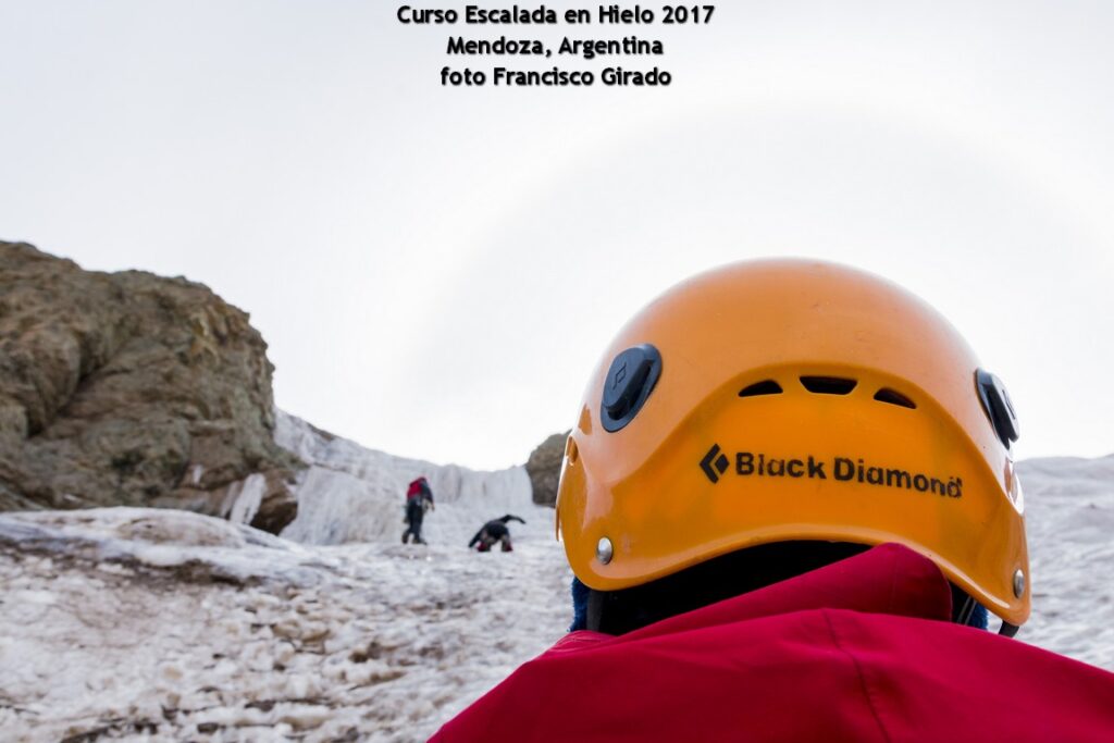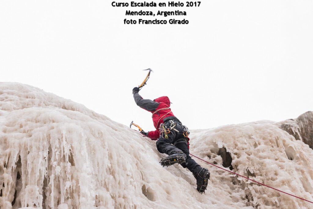 Cursos escalada cascadas congeladas de Puente del Inca. Las técnicas de hielo en vías o pendientes tienen un lugar único en Sudamérica. Un grupo de cascadas que se forman al comienzo del invierno en la entrada misma del Parque Aconcagua.