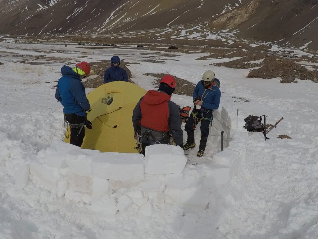 Armado de campamentos y vivacs en condiciones de frío extremo o con tormentas.